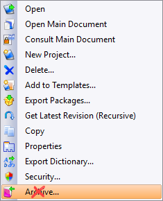Symptom: The archive command is not available in the project manager or in the contextual menu of a project.