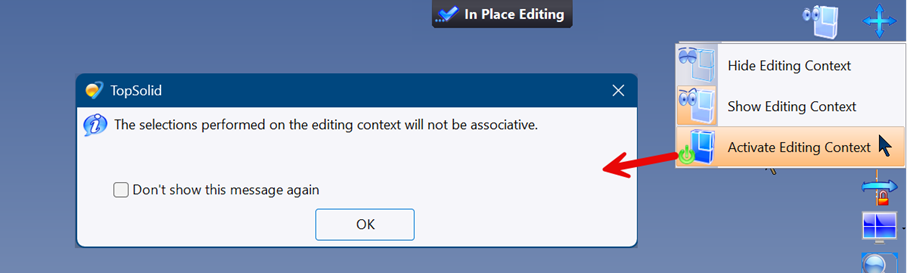 Symptom:In an assembly, when editing in place a part, the editing context is not associative.