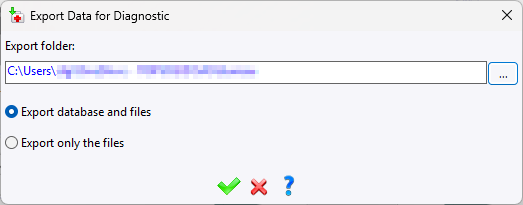 The export for diagnostics command will begin by creating a folder containing a backup of the SQL database and a copy of all the files of the vault corresponding to the selected document. This folder will then be compressed into a .zip file.
